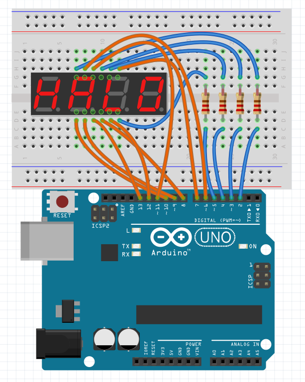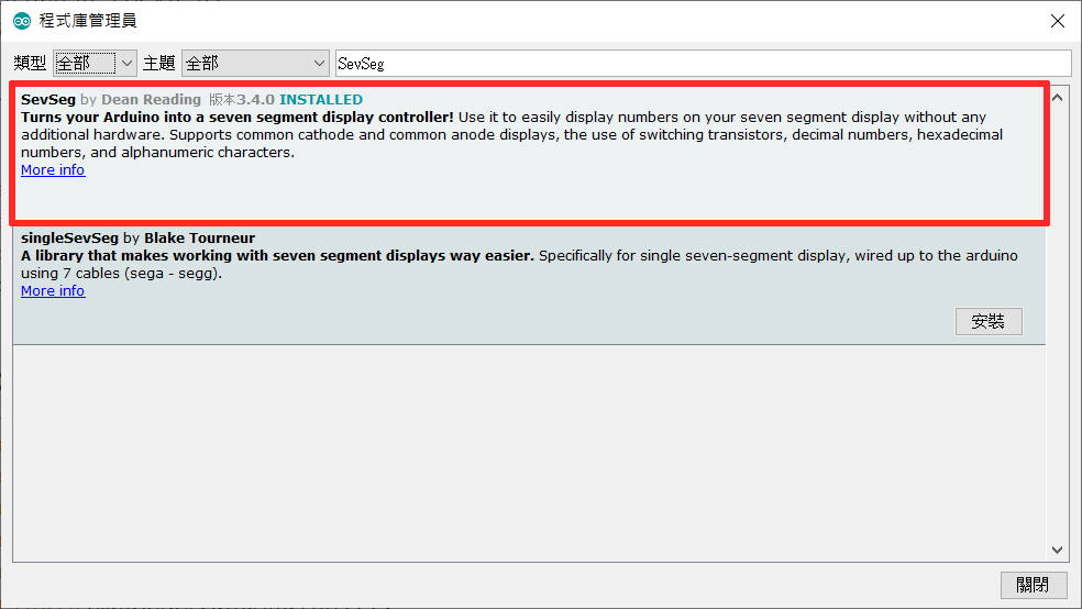 因為接線已經很花時間,所以程式部份就強列建議用函式庫吧,SevSeg超好用的,幾行程式就能搞定,還能自行設定共陰或共陽。
