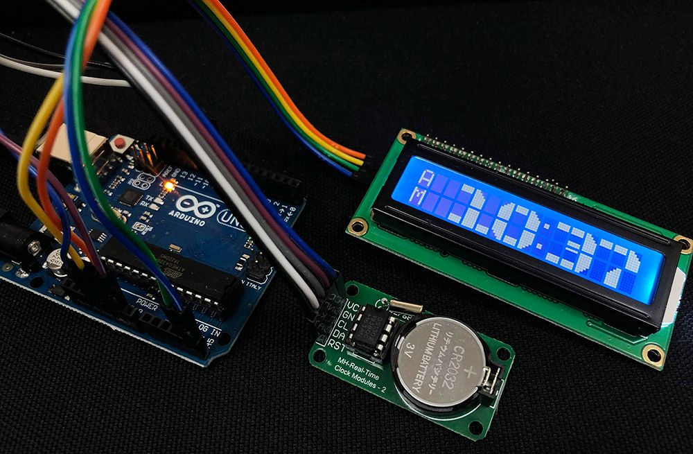接線不難,DS1302有3條信號線,可以從程式中自行修改。1602是I2C介面,SDA接A4,SCL接A5,大家應該很熟了。