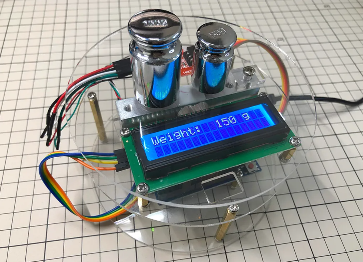 電子秤專題是許多人在學習Arduino會選擇挑戰的,主要的元件就是HX711重量感測模組,還有負重元(Load Cell)。但因為要把負重元安裝起來,所以必須加上至少2塊板子,一般會用雷切的壓克力板。而傑森創工提供的電子秤套件還包含了一個用來顯示的LCD,整套是用3片圓形壓克板組成。