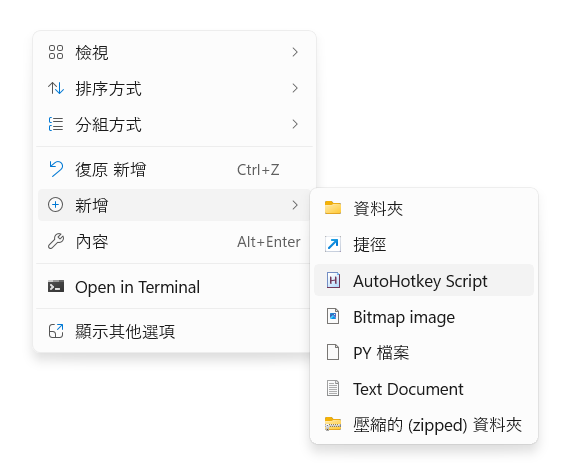 - 在你的電腦桌面(或任何資料夾)空白處,點擊 右鍵 ➡️ 新增 ➡️ AutoHotkey Script。