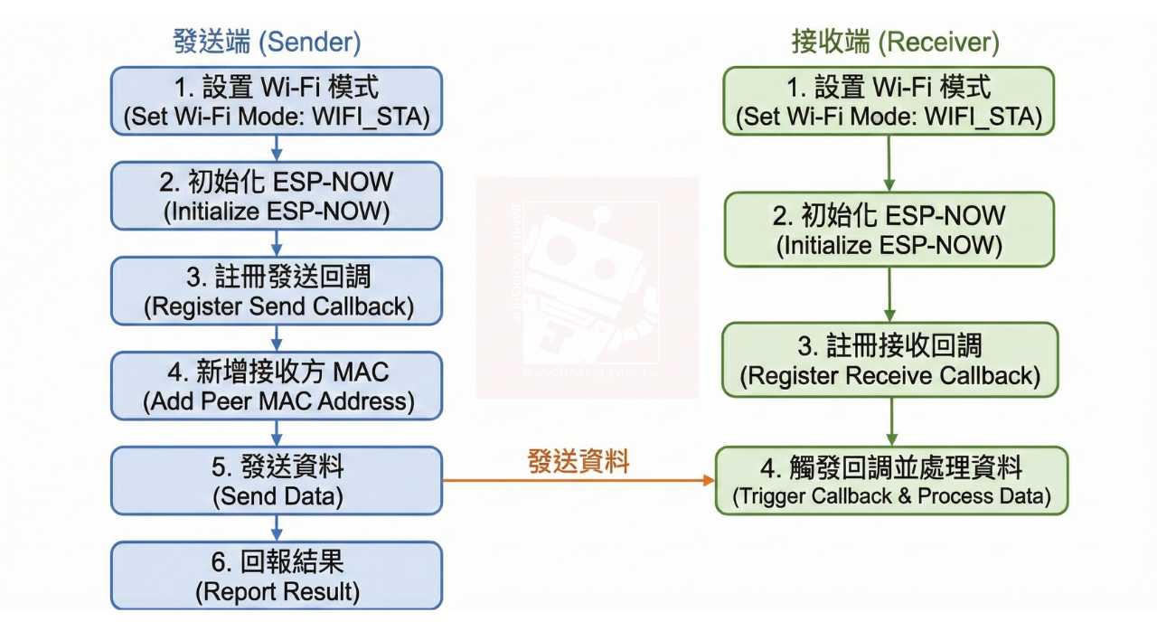 ESP32 NOW運作流程示意圖