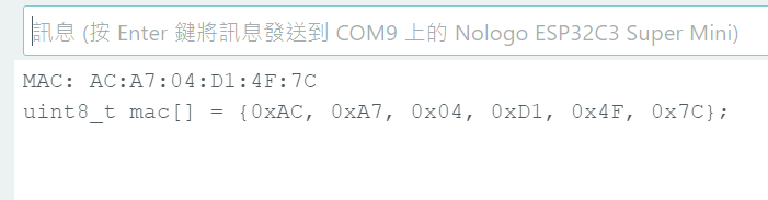 將以下程式分別燒錄到兩片板子,從 Serial Monitor 記下各自的 MAC。