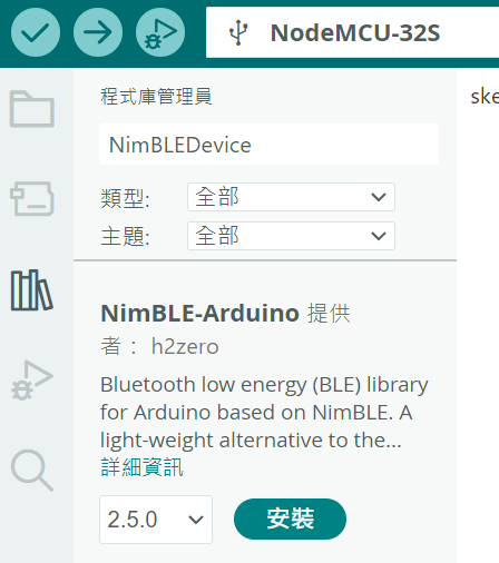 - 安裝 NimBLE-Arduino by h2zero(選最新版本)