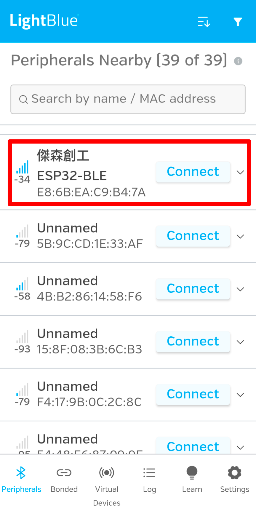 - 找到「傑森創工ESP32-BLE」後點「Connect」