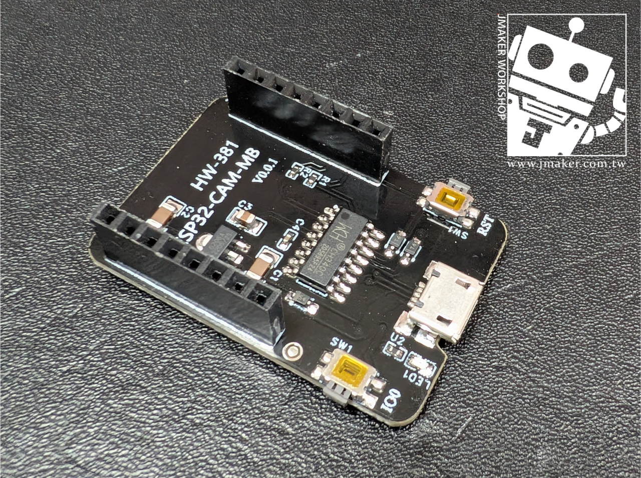 上傳底板是一塊小小的轉接板,把 ESP32-CAM 直接插上去,再用 Micro USB 線接電腦就好。不需要任何接線,插上去就能用。