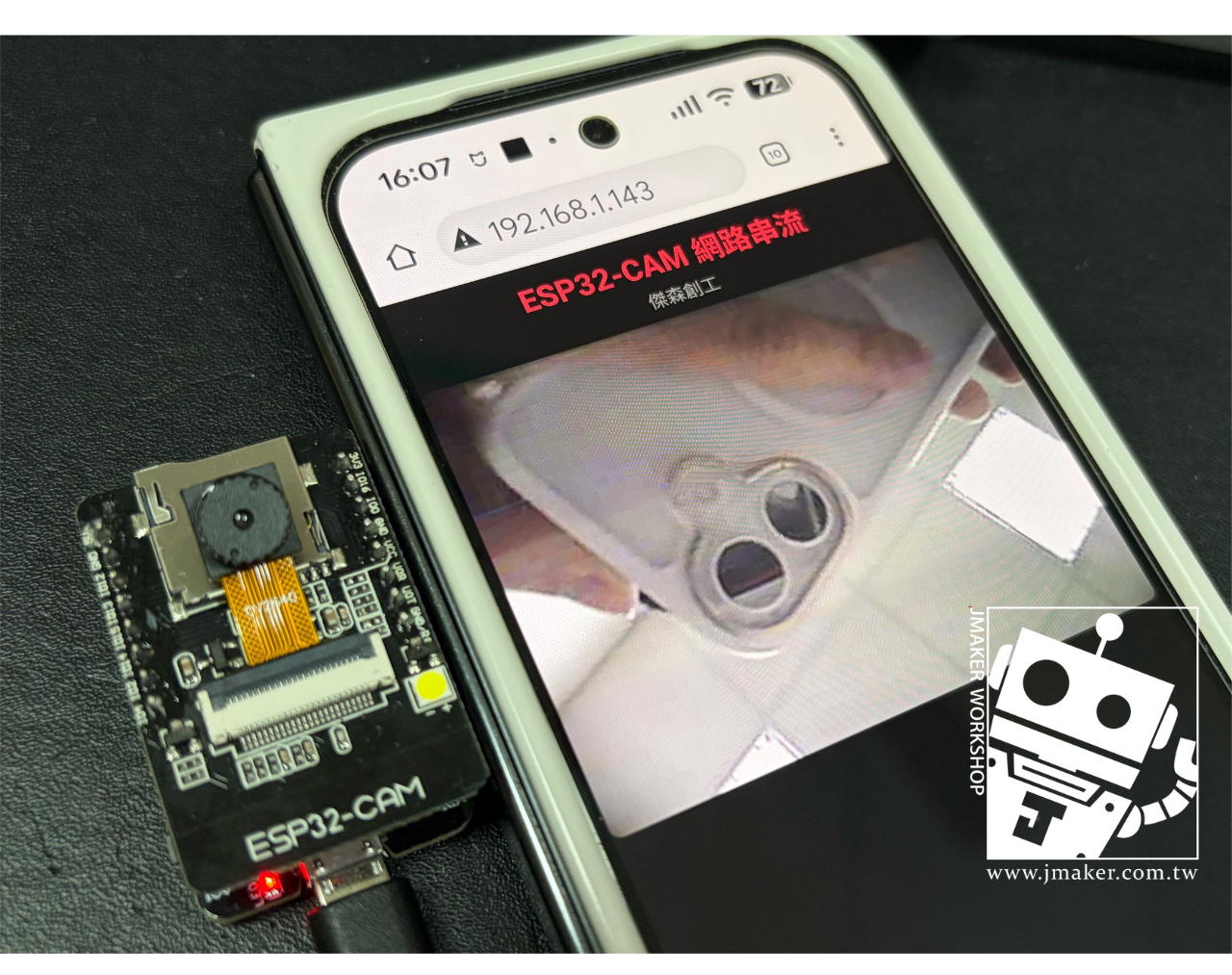 - 開兩個伺服器 — Port 80 提供有標題的網頁,Port 81 提供 MJPEG 影像串流。網頁裡用一個