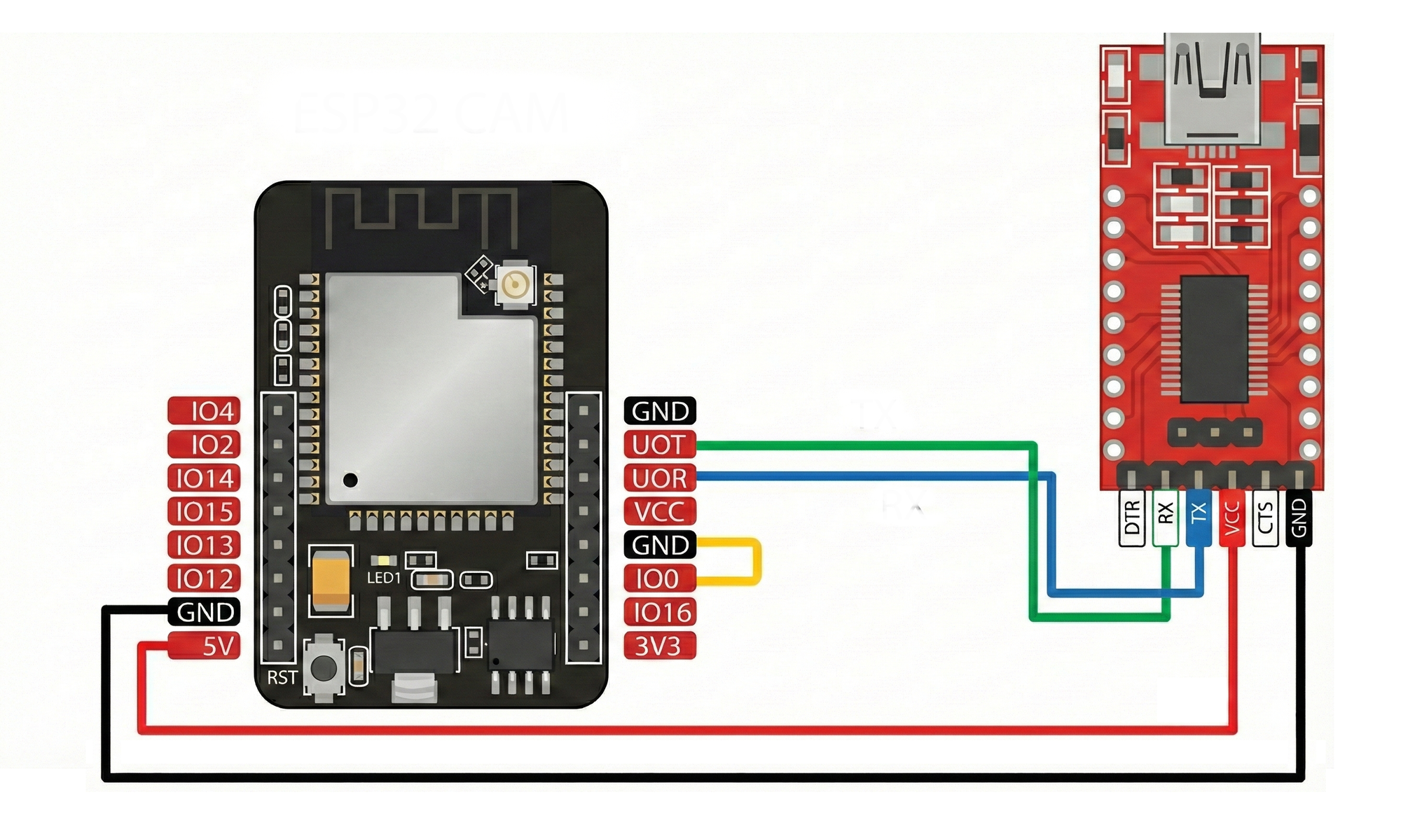 | ESP32-CAM | FTDI 模組 |