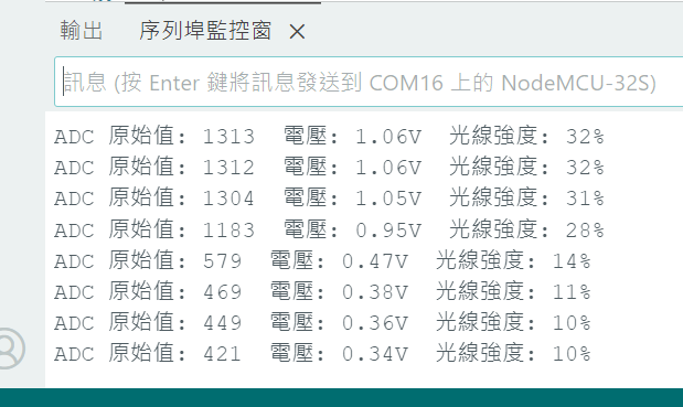 💡 閾值調整技巧:先執行基礎版,記錄白天環境的 ADC 值和夜晚(或遮住時)的 ADC 值,取兩者中間的數字作為 THRESHOLD。
