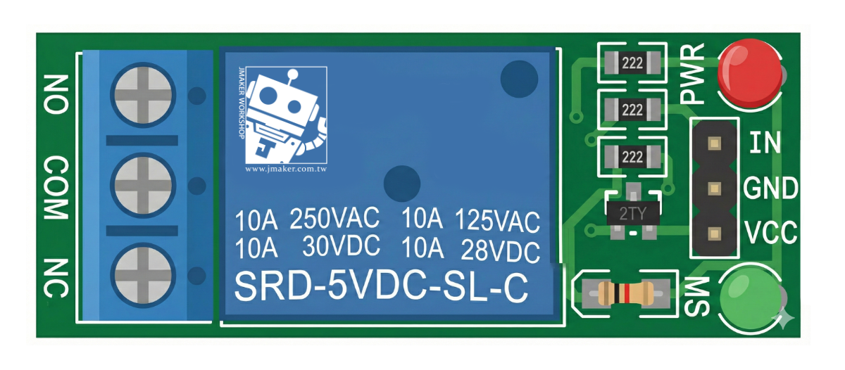 💡 小提醒:有些ESP32 的 GPIO 輸出為 3.3V,大部分 5V 繼電器模組的光耦合器仍然可以被 3.3V 觸發,但少數模組可能不行。如果你發現控制不了,可以將 VCC 接到 VIN(5V),或選購標示支援 3.3V 的繼電器模組。