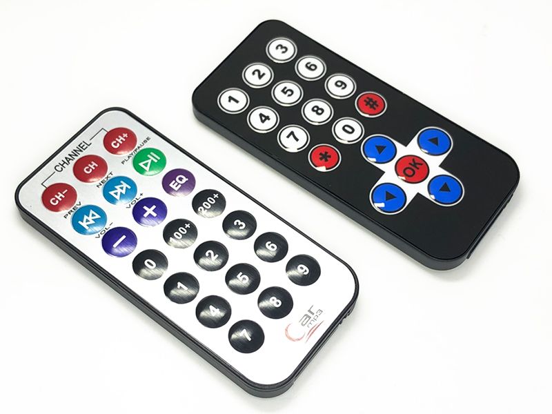 這個範例我們使用現成的紅外線遙控器,常見的Arduino材料會有兩種款式的遙控器,基本上都是一樣的,只是外型和按鍵不同而已。