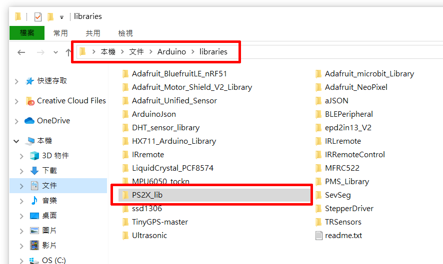 那我們就開始做囉!首先最重要的,就是先安裝PS2X的函式庫。這個比較麻煩一點,因為無法從Arduino IDE的程式管理員中找到(目前為止),所以要自行去下庫,再把它放到電腦裡Arduino的libraries目錄裡。